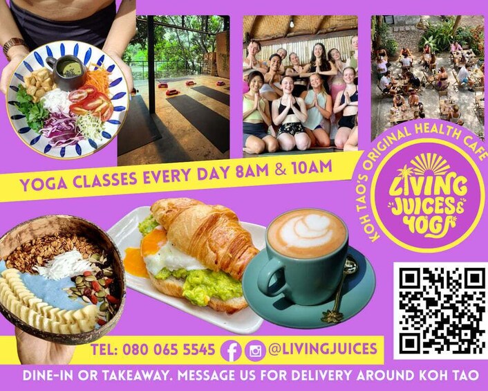 - 14 126 Koh Tao Amphoe Ko Pha-ngan, Chang Wat Surat Thani 84360, Thailand | Follow the signs to LIVING JUICES & YOGA. Please remember to message to confirm your spot for the yoga class.