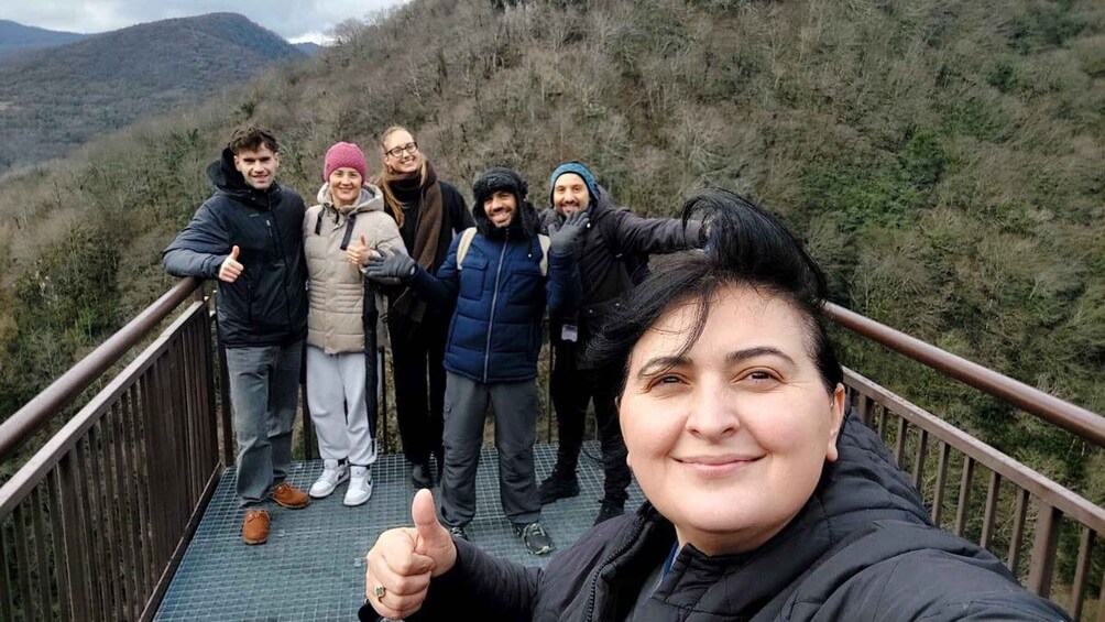 You will drive to the Okatse Canyon, where you will change a car to a 4x4 vehicle from the visitor center to the canyon entrance (an extra fee of 15 Gel). At the Canyon you will walk 900 steps on a panoramic hanging bridge & enjoy views of nature, especially in the spring and summer seasons, surrounded by lush green forest. After taking beautiful photos and a short rest on the panoramic bridge, you will take the car back to the visitor center.
