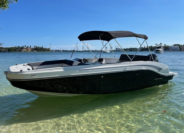 Cruise the sparkling waters of Miami while enjoying your own playlist on our Bluetooth sound system. Enjoy the provided water, ice, and cooler for any extra drinks you bring.