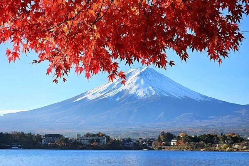 Mount Fuji, Japan’s most iconic and sacred mountain, stands at 3,776 meters and is recognized as a UNESCO World Heritage Site. When booking this experience, travelers will have the opportunity to witness the breathtaking beauty of this perfectly symmetrical volcanic peak, which has inspired artists, poets, and travelers for centuries. Depending on weather conditions, guests may enjoy panoramic views of Mount Fuji rising majestically above the surrounding countryside. On clear days, the snow-capped summit creates a stunning contrast against the blue sky, offering unforgettable photo opportunities. Travelers will explore scenic areas around Mount Fuji, such as Lake Kawaguchi, where the reflection of the mountain on the water creates postcard-perfect landscapes. Seasonal flowers, including cherry blossoms in spring and colorful foliage in autumn, enhance the beauty of the region throughout the year.