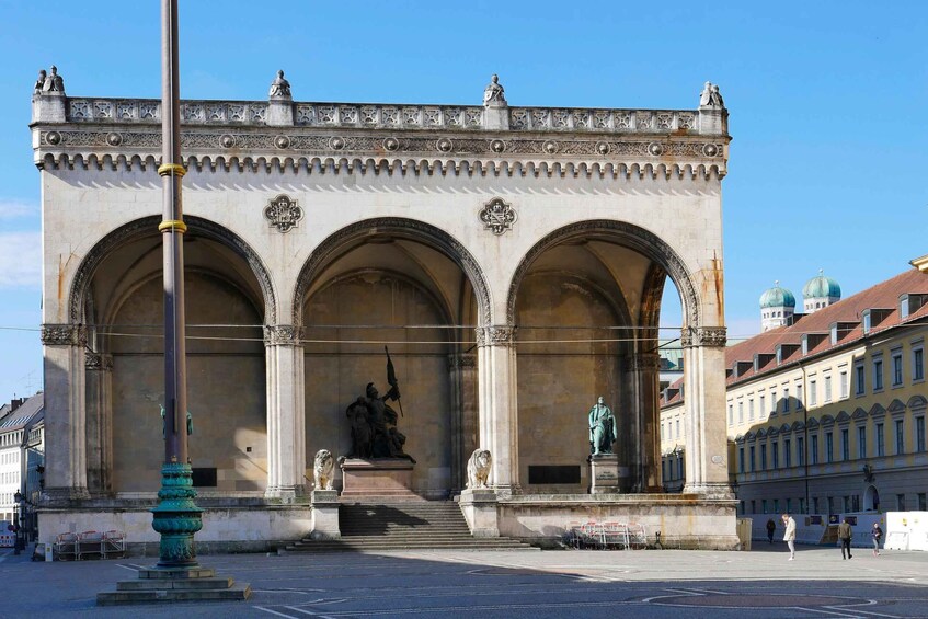 Pass the former Gestapo headquarters to reach Feldherrnhalle at Odeonsplatz, where Hitler's Beer Hall Putsch took place on November 9, 1933. Your guide will bring along a number of historic black and white photos in order to illustrate certain events and topics.