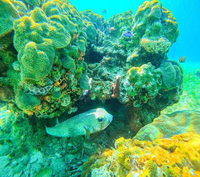 Explore the underwater world in the Bahamas and snorkel over a sunken sail boat and airplane on this day tip. Transfer by boat from Nassau and get access to 4 bars, 3 beaches, 2 pools, and an underwater sculptures garden with the included day pass to the private island.