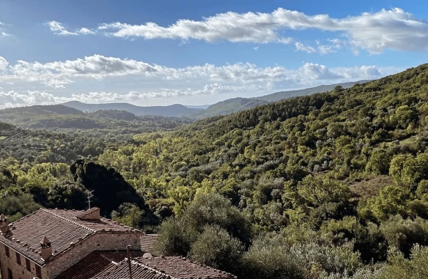 Continue with a gentle stroll through the picturesque medieval village of Roccalbegna, perched at 522 meters altitude in the heart of Maremma Grossetana. This charming town, with its fortress ruins overlooking rugged cliffs and the source of the Albegna River, embodies centuries of history and authentic local character.