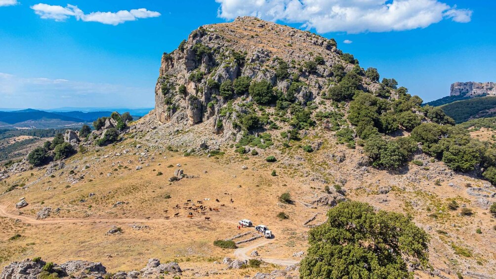 Our expert guide will accompany you on a walk to the top of Monte San Giovanni, at 1316 meters, and at the end of the morning you will get to know the famous murals for a guided tour of about an hour, to understand the importance and value of these wonderful works of art that tell the culture, the history of the country and Sardinia. A day without stress and with the convenience of off-road, with which to explore the most evocative areas of the island.