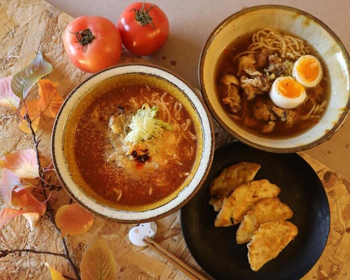 - Discover the secrets of making soy sauce and tomato ramen, and gyoza dumplings