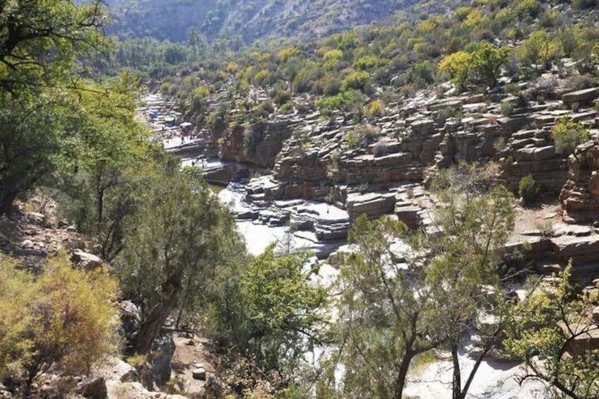 We well driving towards the Immouzer & Paradise Valley road (Honey road), north of Agadir (Agadir to Paradise Valley), where the water flows all the time and the green is permanent. Take an adventure through Paradise Valley, and make your way from the city to the countryside to see the tiny streams, mountain gorges, and flowing waterfalls in the picturesque villages. Once we arrive to Paradise Valley, we will have a hike of 20 minutes before settling down for a beautiful time at the natural pools, perfect for swimming and chilling…