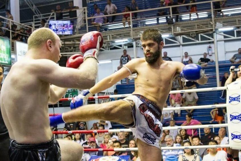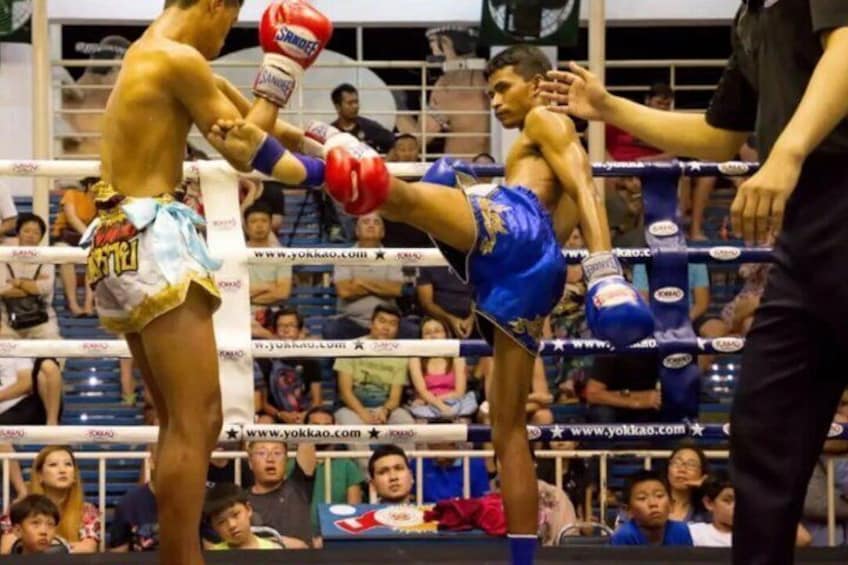 Ringside Seat near the action at Bangla Boxing Stadium, Patong. 8 bouts nightly. Gates 20:30, show 21:00. T-shirt included.