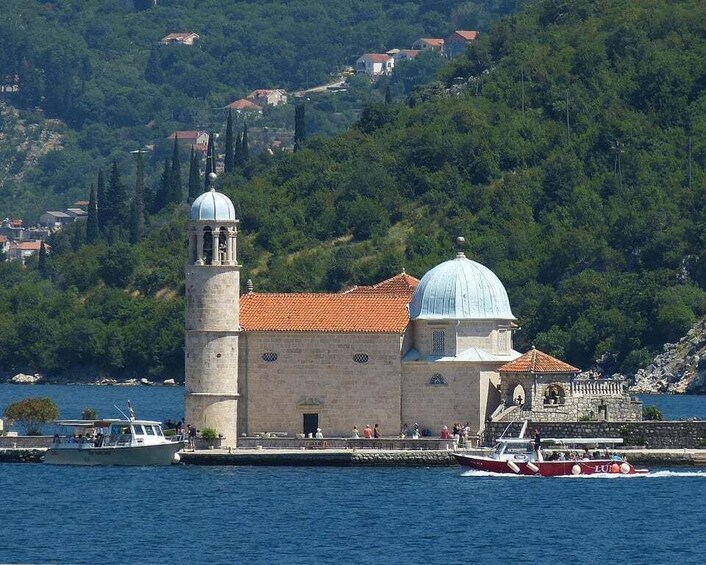 Our team will welcome you next to the Museum of Perast at the “Barbeta Speedboat meeting point”. We give you a ride to the island (and back) where you can enjoy your visit to the church (on you for a fair extra fee).