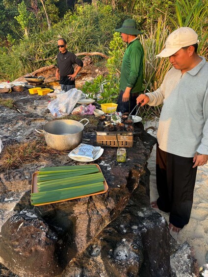 - Enjoy a seafood BBQ with your catch and home-cooked dishes on a private beach