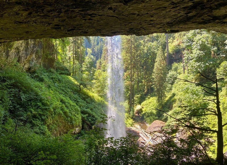 Immerse yourself in the natural beauty of Silver Falls State Park on a guided hiking tour from Portland. Explore a waterfall-rich canyon, encounter century-old trees, and marvel at unique geological formations.