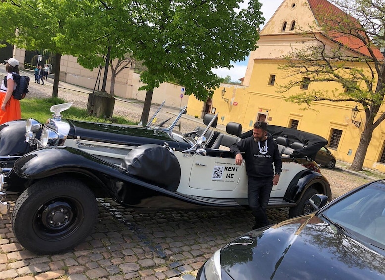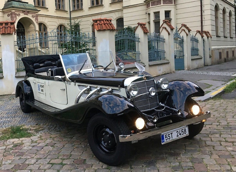 Discover the charm of Prague on our 60-minute classic car tour. Travel back in time in our self-made replica of the Mercedes 770K while listening to an informative audio guide available in multiple languages. Sit back in the comfort of our cabriolet as we take you on a journey past the city's most famous landmarks.