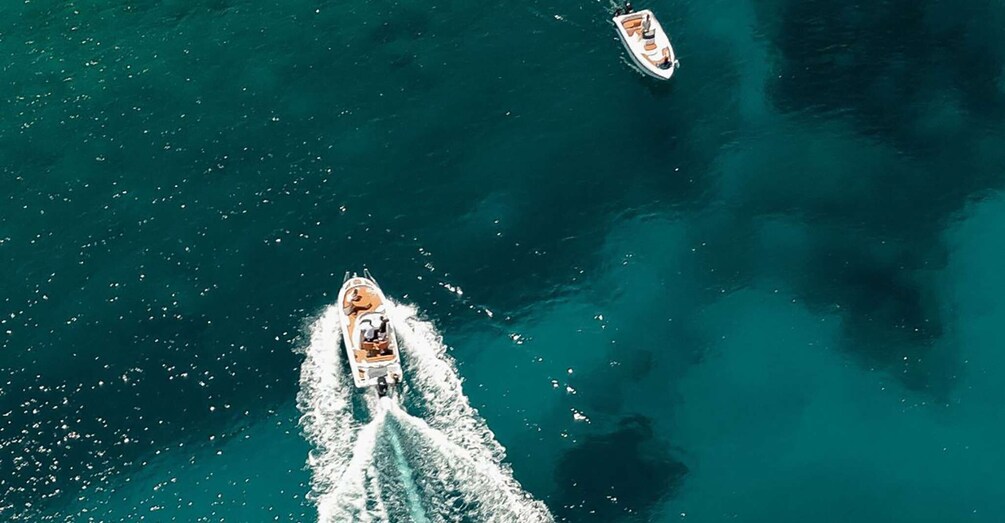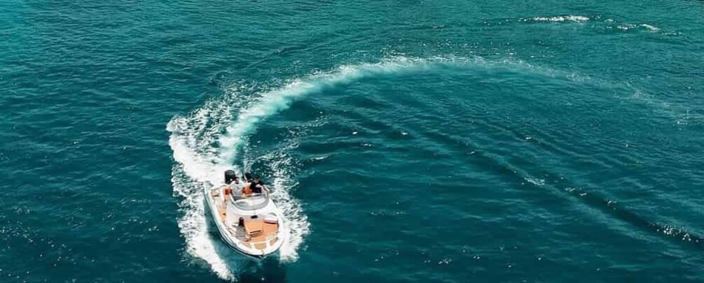 Private cruise with a fully equipped boat (shower, toilet, music system, sun tent), snorkelling equipment, snacks and drinks.