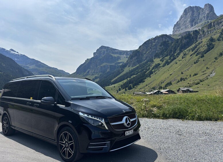 Afterward, your driver will guide you out of the city toward the shimmering Lake Thun, where the Schloss Oberhofen awaits: a fairytale lakeside castle with pointed towers and gardens reflected in the water.