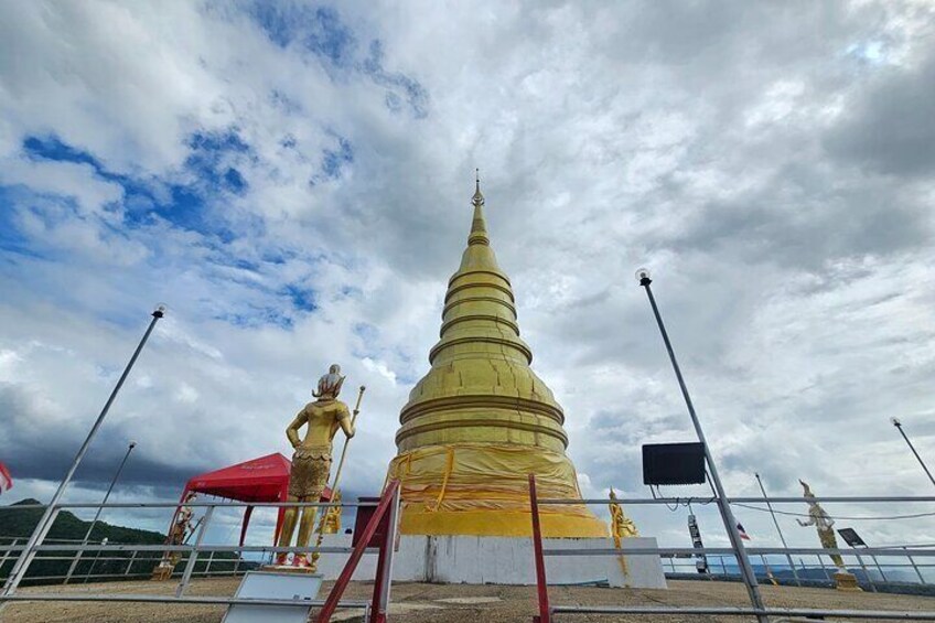 Next, visit the peaceful Phra That Si Mueang Kan Chedi, a golden stupa with breathtaking panoramic views, located just outside Wat Tham Khao Poon. It’s a sacred hidden gem that most visitors overlook.