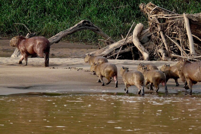 At night we will go in search of white caimans that are generally found on the banks of the Madre de Dios river arena, for which we will need to take a flashlight. We can also see the capibara, the largest rodent in the world that can weigh 60 kilos, return to the hostel, scene and rest.