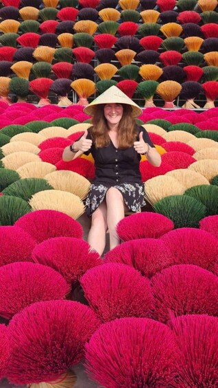 10h00: Arrive center of the village. Take a walk to see how locals make incense on the artisanal, family scale. Meet a family who specializes in dyeing incense sticks and take in the colorful bundles of incense.