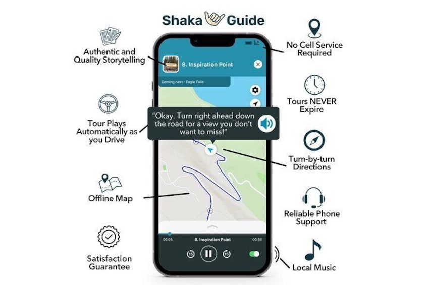 - Top Features: • Hands-Free: The tour works automatically - GPS-activated stories, directions, and music play as you drive for a seamless experience. • Works Offline: No need for continuous wifi or data. • Reliable Support: Get help via call, chat, or email.