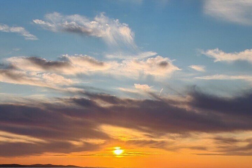 Starting from the arranged meeting point. We gently sail at sunset toward the Sea Organ, as the sky floods with hues of various colors. Throughout the tour, our skipper shares intriguing historical information about Zadar and its surroundings, adding local charm and context to the city. Sipping cocktails of your choice and with soft music accompanying the sound of the waves, dive into the feeling of an unforgettable sunset.