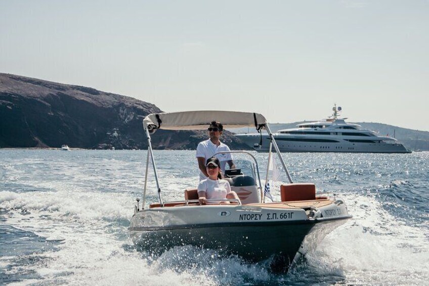 Santorini: License-Free Luxury Boat Rental – Half Day or Full Day