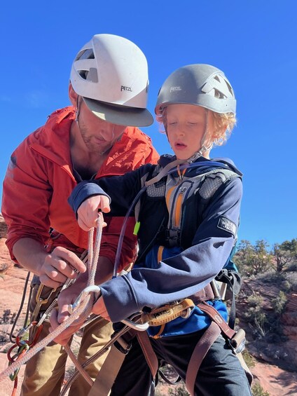 After checking in at your meeting location in Springdale, listen to a safety briefing from your expert instructor and guide, get geared up, and prepare for your unforgettable canyoneering experience. You will be transported to the trailhead where your experience will officially begin. An experienced guide will show you the ropes so you can feel comfortable enjoying this unique adventure.