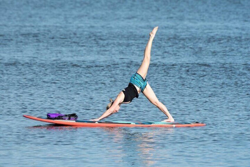 • 90-minute stand-up paddleboard yoga session