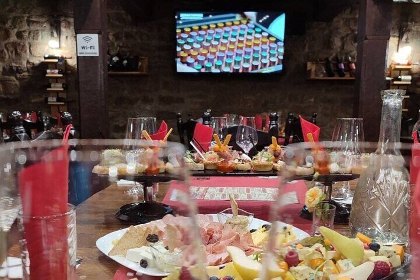 Wine Tasting Centre offers your change of tasting 5 types of wine specially chosen from local wineries. Our team of professionals will guide you through the degustation helping you to experience every element of the taste. The degustation includes special selection of appetisers complementing the wines: yellow cheese, cheese and sausages from regional producers, olives, bread and mineral water. Only with us you can use professional tasting sets, including 88 wine aromas, to recognize the noble and defective aromas of wine. Suitable for wine lovers and professionals - interesting and fun!