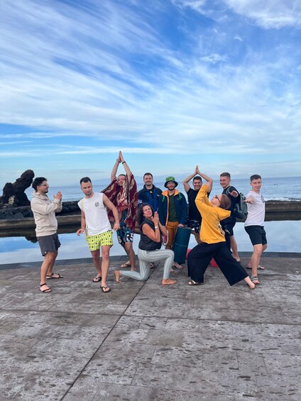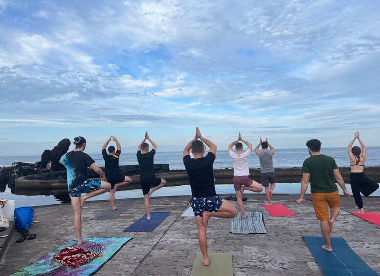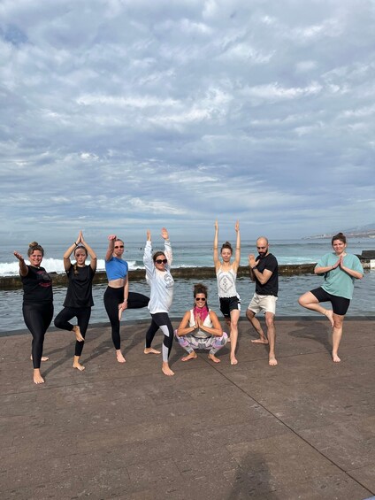 PEOPLE PEOPLE - Av. Francisco Andrade Fumero, 1, 38650 Arona, Santa Cruz de Tenerife, España | Join our yoga class on a terrace overlooking the sea, located in front of the natural pool at Oa Beach, in Villa Cortés, Arona, Tenerife. The space is on a pedestrian promenade with a refreshing sea breeze, and although it won't be on the sand, the terrace is very stable and comfortable.