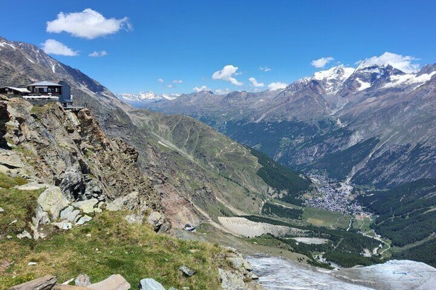 Accessible by cable car, it’s perfect for photography, glacier hikes, and adventurous mountain walks. From here, you can admire the Dom, Täschhorn, and Allalinhorn, while trails lead directly onto the Fee Glacier for those seeking high-alpine adventure. Hohsaas also features a panoramic restaurant and viewing platform, where you can relax while soaking in the majestic scenery.