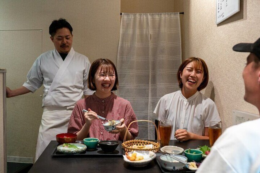 Join a hands-on Japanese cooking experience where you can learn how to use a knife like a professional chef and slice ingredients to bring out their best flavor. Watch expert techniques up close as you learn how to care for and handle Japanese knives. You are welcome to bring your own knife purchased during your travels, or simply use one of the provided knives, therefore all you need to bring is yourself! How to sharpen and care for a Japanese knife How to cut sashimi Decorative vegetable cutting techniques 1. Meet at Nishi-Koyama Station (ground level exit) 2. Walk to the venue with your guide (10 min) 3. Knife care & sharpening lecture (50 min) 4. Cooking session: sashimi & tempura (30 min) 5. Enjoy the meal you prepared (30 min) 6. Tour ends at the venue