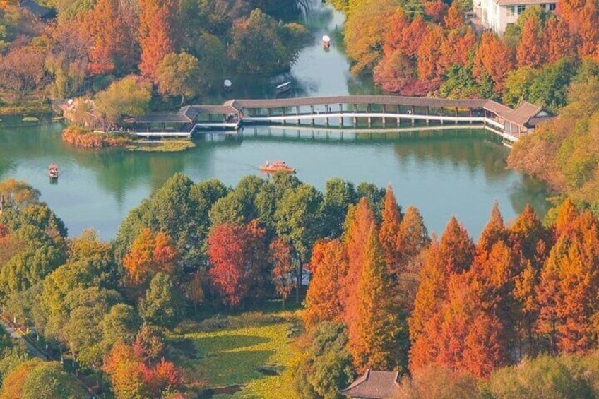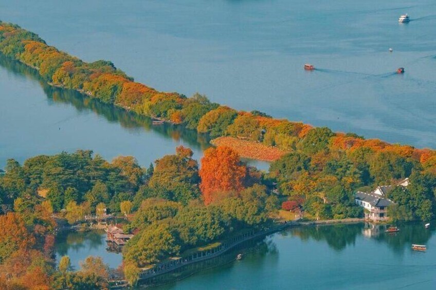 The tour begins at Prince Bay Park, a beautifully landscaped garden known for its seasonal flowers, lakeside paths, and tranquil atmosphere. From there, continue along scenic hillside routes to viewpoints such as Jiuyao Pavilion, where you can enjoy elevated views of West Lake and the surrounding hills.