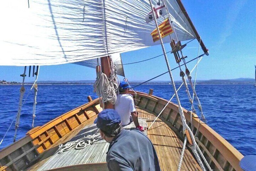 Learn all the secrets of sailing on board a vintage boat in the beautiful Gulf of Alghero, along the north-west coast of Sardinia. You will immerse yourself in the history of Latin sailing with the skipper's engaging explanations on the history of commercial navigation in the Mediterranean Sea as well as on the main sailing manoeuvres, which you can try out under his expert guidance. The itinerary will be chosen according to the weather conditions of the day and the skipper's decisions. - Departure from Alghero - Coastal navigation towards Fertilia - Exploration of the south-eastern coast of the Porto Conte Park - Arrival at the splendid Bombarde beach - Return to Alghero