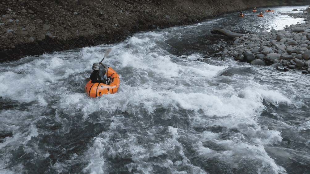 Embark on an exciting 4-hour packrafting adventure on the Tres Amigos River. Enjoy a hotel pickup and drop-off, professional gear, and a safety briefing before navigating through class II and II+ rapids.