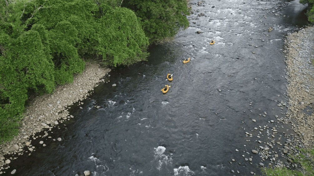 Embark on a unique journey through class II and II+ rapids, enjoying stunning scenery and calm water pools where you can jump in and swim. Halfway through the tour, be offered a tropical fruit snack before continuing the adventure.