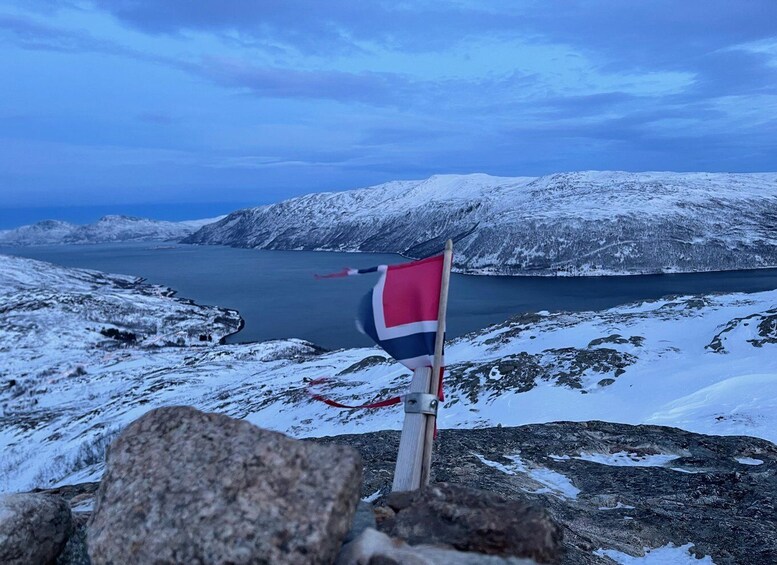 At the viewpoint, we take time to pause, enjoy the silence, and take photos of the magical fjords below. You’ll be served warm coffee, tea, or hot chocolate as you take in the scenery — a perfect Arctic moment.
