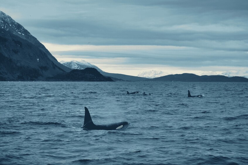 Set sail from Tromsø to explore the magical Arctic waters, renowned for spectacular whale watching. Experience close encounters with majestic humpback whales, playful orcas, and impressive fin whales in their natural habitat.
