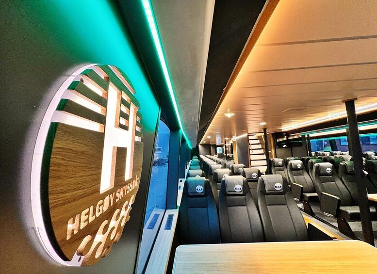Relax onboard a spacious and comfortable boat, featuring large panoramic windows and an inviting open-air deck – perfect for enjoying views of beautiful fjords and the stunning winter landscape. In addition to the chance of seeing whales, this is a fantastic way to experience the wild and beautiful Arctic landscape. You might even spot majestic birds of prey, such as the white-tailed eagle.