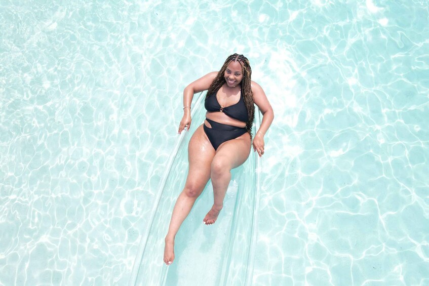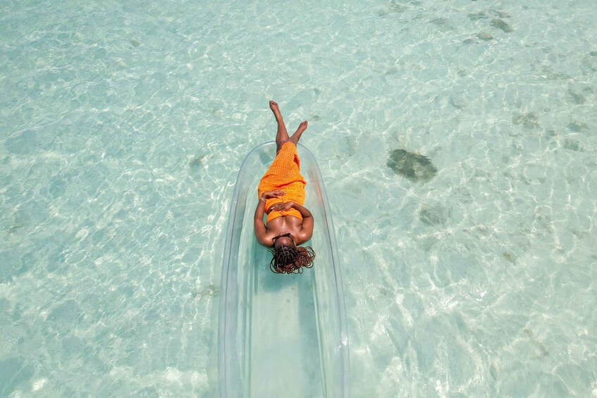 Experience the Caribbean like never before in this one-of-a-kind clear kayak photoshoot session, with stunning drone photography capturing every unforgettable moment from above.
