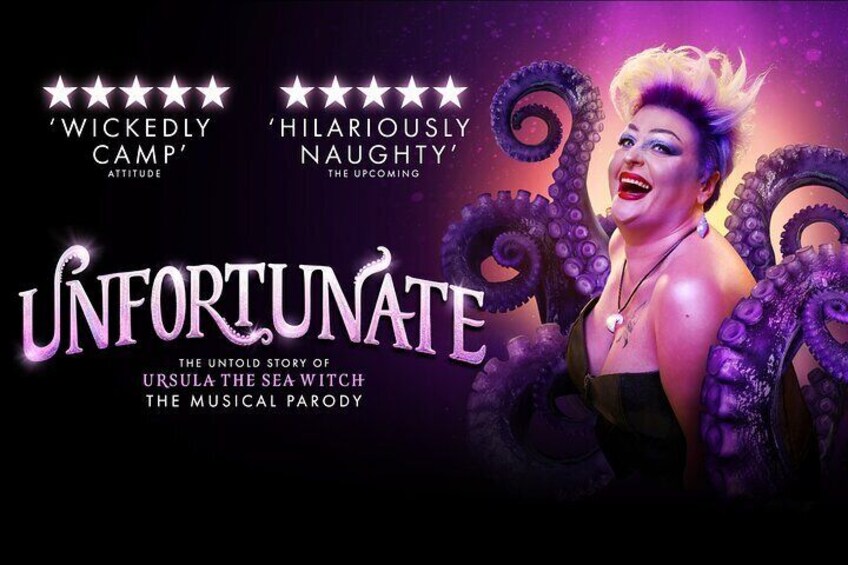 Disney villain. Octo-woman. Plus-size icon The five-star, sold-out, splash-hit Unfortunate: The Untold Story of Ursula The Sea Witch returns to London for a limited eight week run in 2026. Unfortunate dives into the story of everyone’s favourite Disney diva, as she spills the tea on what really goes on under the sea in this tale of sex, sorcery and suckers! In an all-new de-‘fin’-itive production, with an original hot pop soundtrack and trademark filthy humour, it’s time to take the plunge and get your tentacles around tickets for this year’s hottest night out!