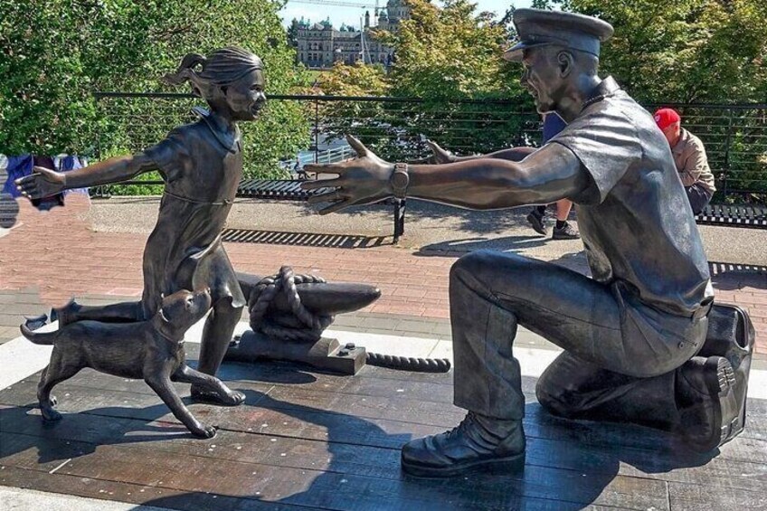 Witness the poignant "Homecoming" statue at Fisherman's Wharf, a moving sculpture that beautifully captures the heartwarming reunion of a fisherman with his loved ones after a long journey at sea. This captivating artwork is a truly memorable moment, offering a glimpse into the emotions of homecoming and family connection.