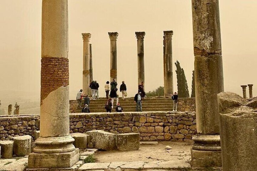 Travelers will explore the ancient Roman city of Volubilis, a UNESCO World Heritage Site and one of North Africa’s most important archaeological sites. Walk along the well-preserved streets, admire stunning mosaics, temples, columns, and triumphal arches, and enjoy panoramic views of the surrounding countryside. Visitors can take photos, explore at their own pace, or hire a local guide for detailed insights into the city’s fascinating history.