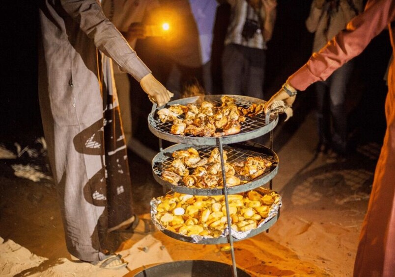 Then, gather in the main communal tent for local Bedouin dinner (Zarb) and relax around the fire.