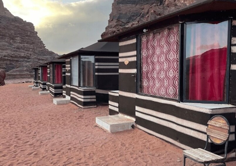 After sunset, return to your private Bedouin tent, designed for 1-3 guests, for a comfortable overnight stay.