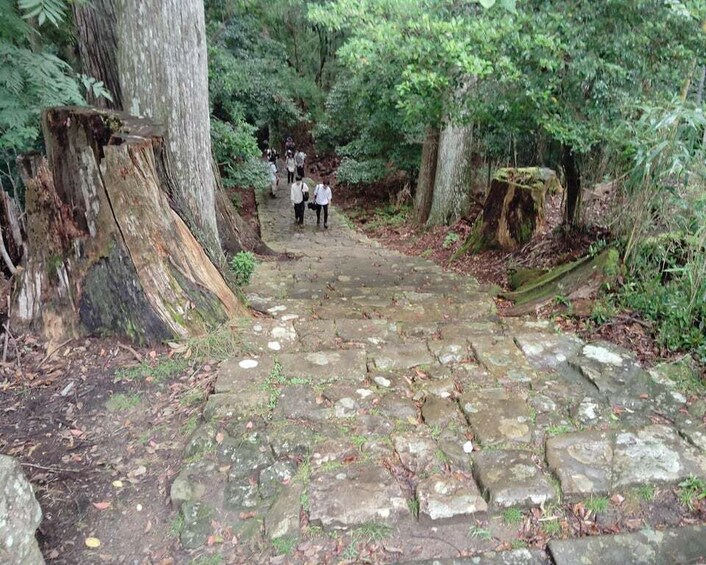 Option to meet the guide at Nachi Station, take a local bus to Daimonzaka — a picturesque section preserving the atmosphere of the ancient Kumano Kodo — and from there, walk on foot toward the sacred site of Nachi in the mountains.
