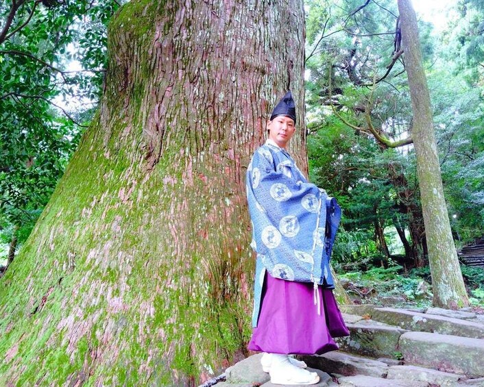 Meet your guide at Nachi Station and take a local bus to Daimonzaka, a scenic stone-paved slope along the ancient Kumano Kodo. Wear traditional robes once worn by pilgrims and walk toward the sacred mountain site of Nachi.