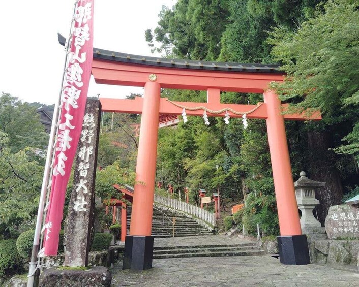 Walk the sacred path of Daimon-zaka to Kumano Nachi Taisha, Seiganto-ji Temple, and Nachi Waterfall. Learn about the Kumano faith and experience a traditional purification ritual.