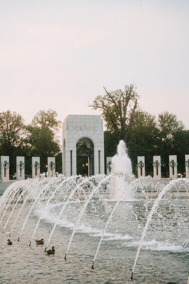 World War II Memorial: Admire 56 granite pillars and a central fountain honoring the spirit of unity during one of history’s most defining conflicts.