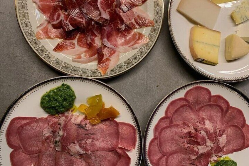 Selection of local cured meats and cheeses