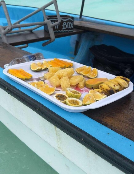 After your underwater adventure, enjoy time to relax on the boat with fresh fruits and bottled water. If lucky, you may even spot more dolphins on the way back! Please note: Landing on Mnemba Island is not allowed, as it is privately owned and protected.